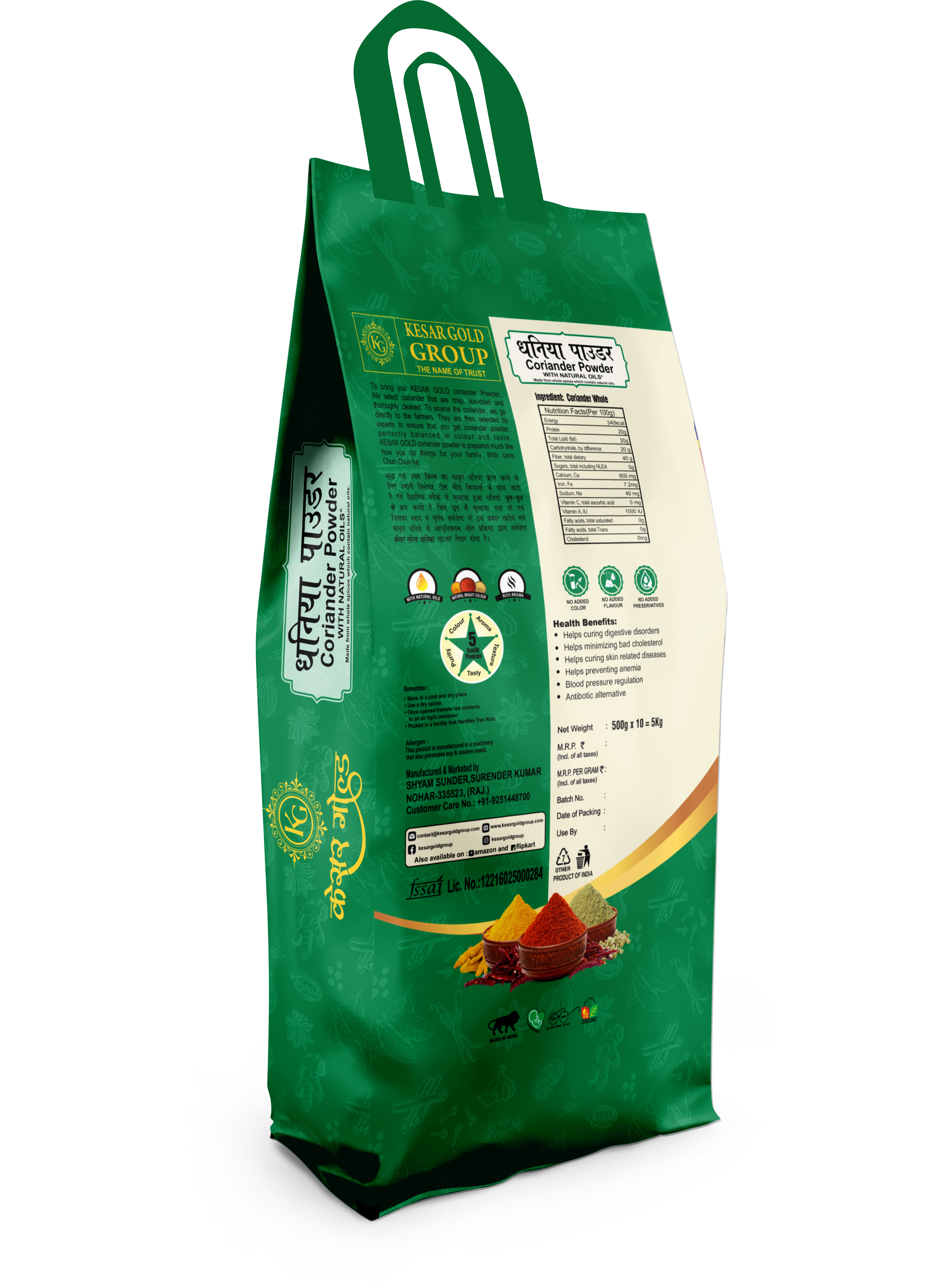 Home » Shop » KESAR GOLD Dried Coriander Powder (Dhaniya) | Quality Dhaniya Powder, Naturally Processed, from Farm Picked Fresh Coriander Seeds | 5 KG